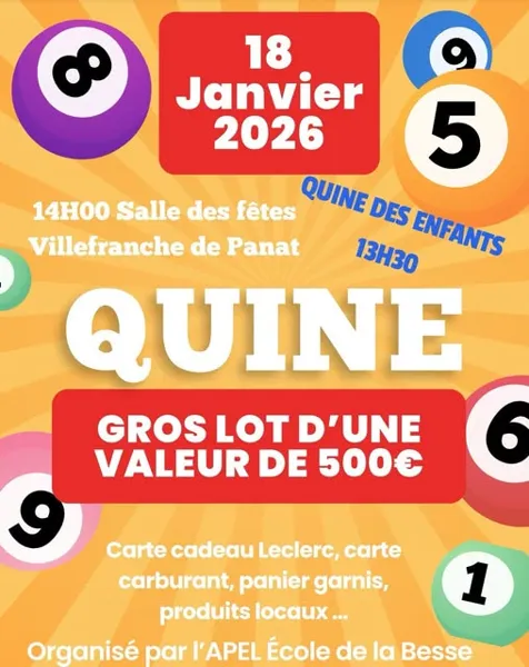Les parents d’élèves de l’Ecole de La Besse vous attendent nombreux pour un nouvel après-midi de jeu. 13h30 : quine des enfants / 14h : quine tout public. Nombreux lots dont gros lot : 500€.
